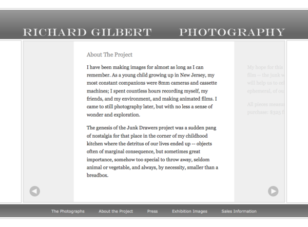 A long-running personal photo series and minimalist web project. I built this from scratch using vanilla PHP, HTML, CSS, and jQuery—no CMS. Visitors can explore a curated collection of literal junk drawers via a lightweight custom image slider. The site reflects my interest in documentary-style storytelling and digital ephemera.