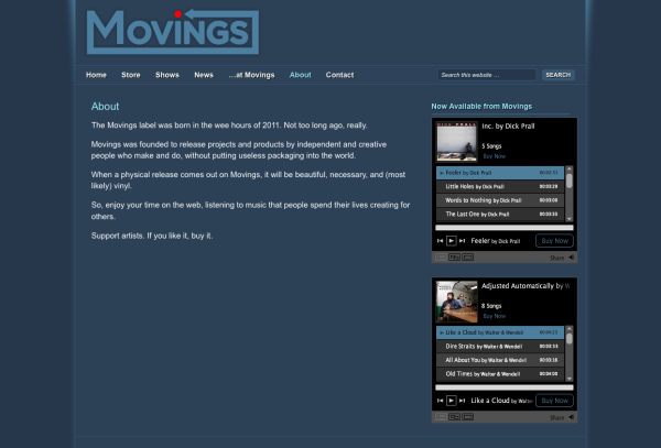 Movings is a Chicago-based, all-digital music label launched in early 2011. I was hired to create both the label’s visual identity and its web presence.